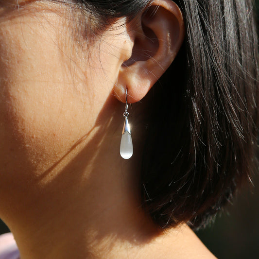 Cats Eye Silver Boho Chic Dangle and Drop Earrings, Pink or White