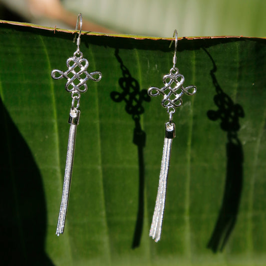Chinese Lucky Knot Boho Chic Dangle and Drop Silver Earrings (R)