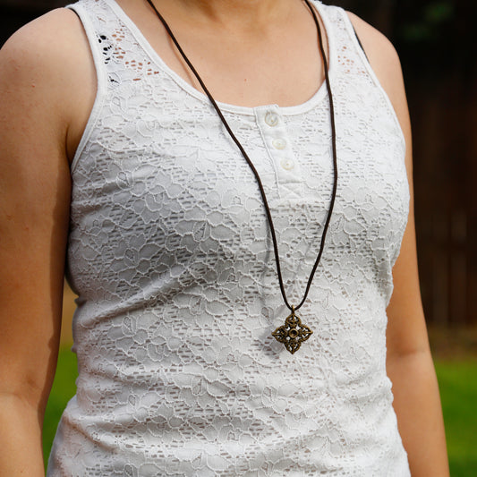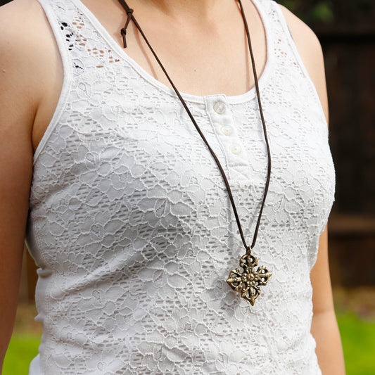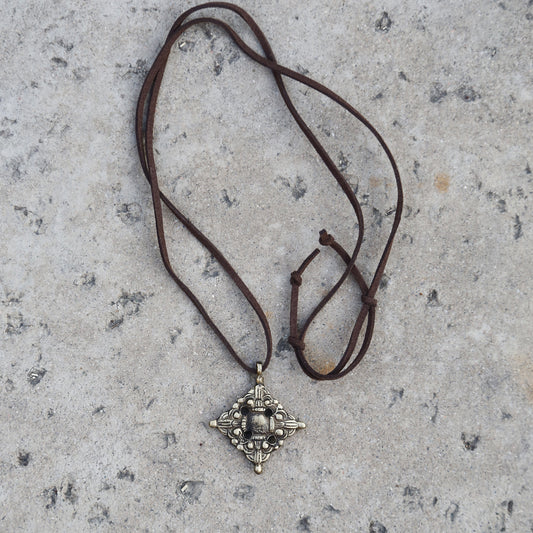 Adjustable Vintage Style Tibetan Vajra Necklace, Tibetan Buddhist Rear View Mirror Charm #25 (R)