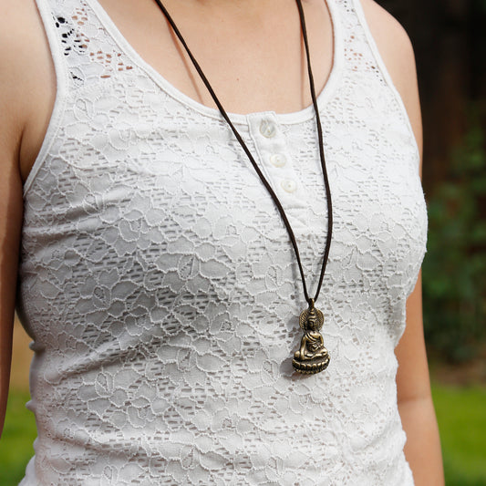Tibetan Vintage Buddha Adjustable Necklace, Protection Rear View Mirror Charm #20