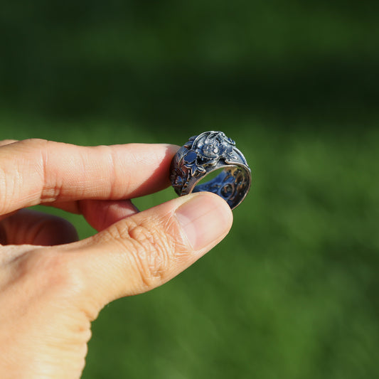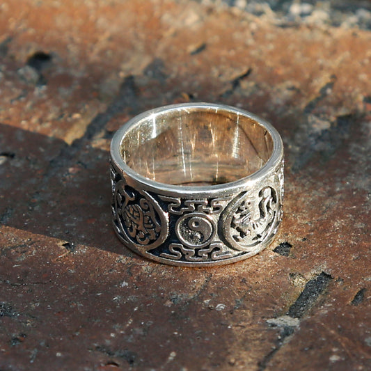 Yin Yang Dragon Sterling Silver Mens Ring, Meditation Ring (D)